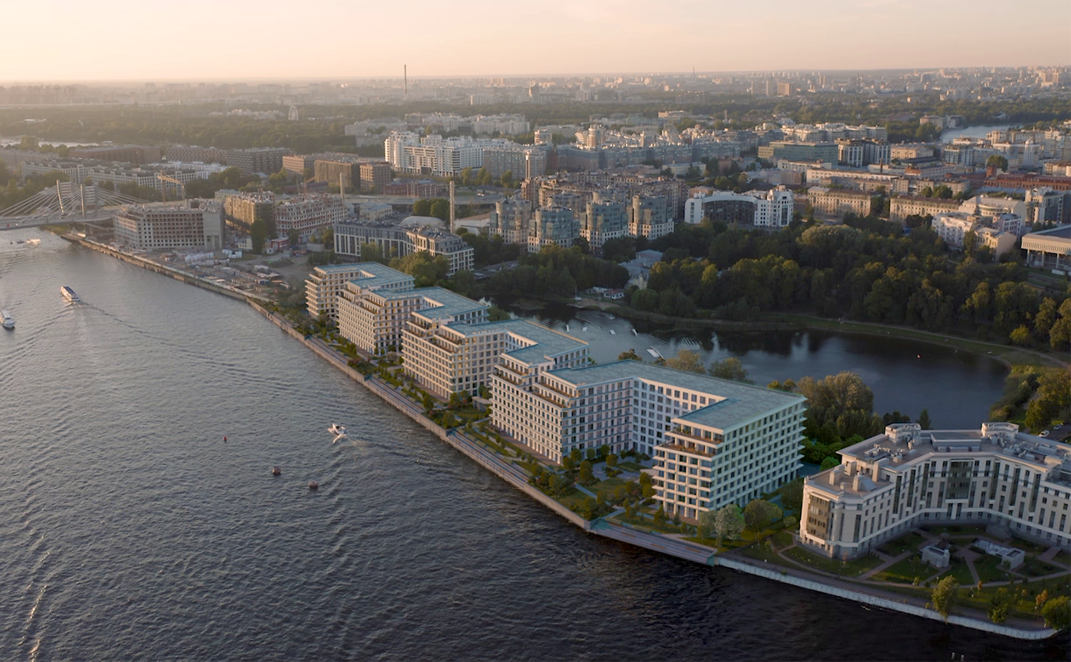 Малая Нева с одной стороны комплекса и Петровский пруд - с другой